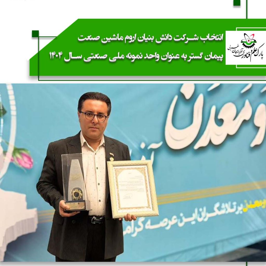 انتخاب شرکت دانش بنیان اروم ماشین صنعت پیمان گستر به عنوان واحد نمونه ملی صنعتی سال ۱۴۰۴