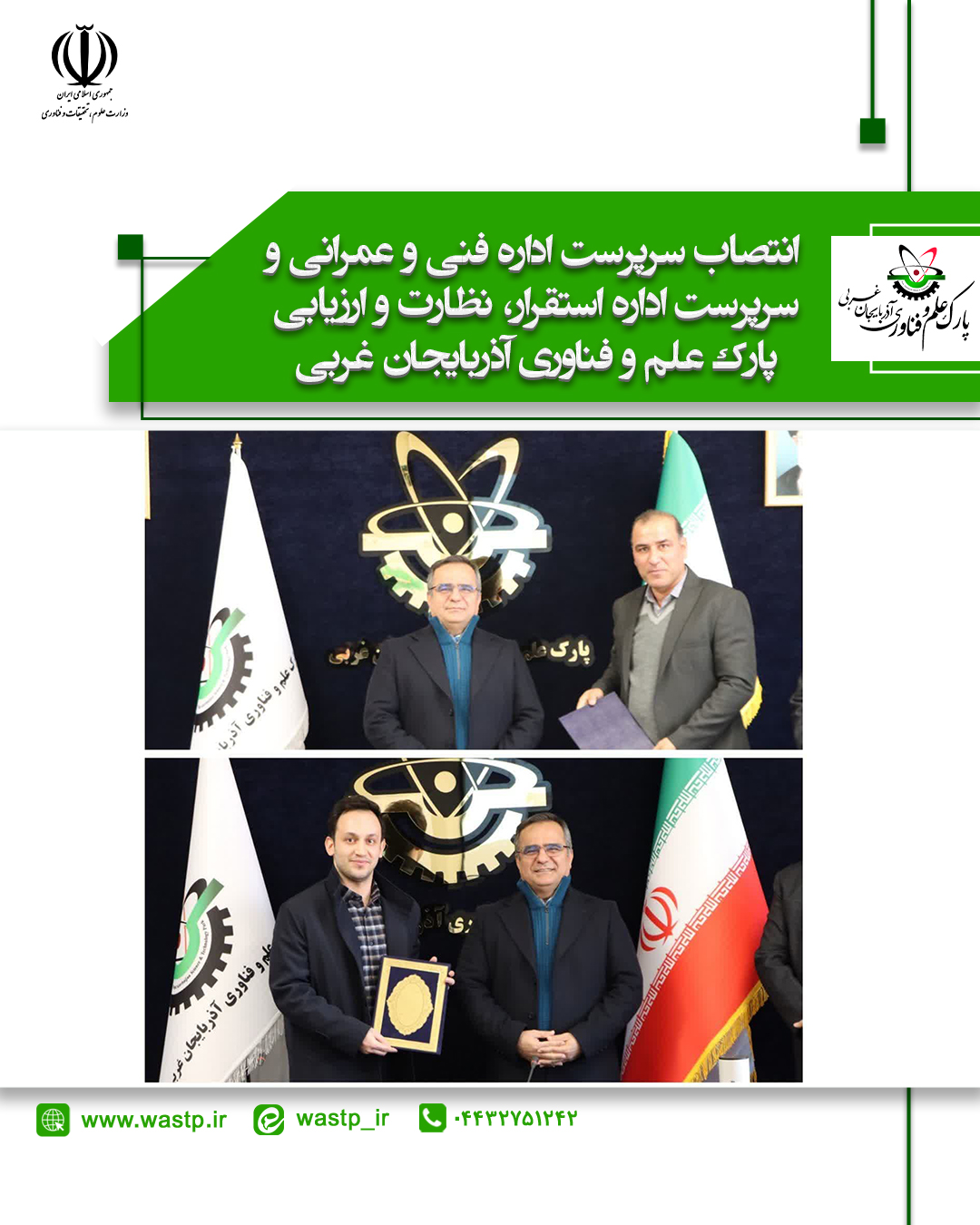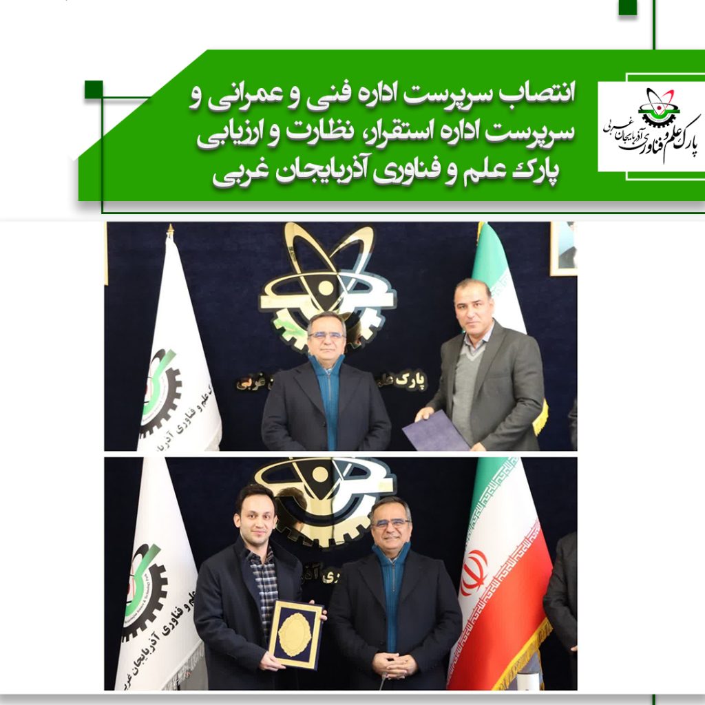 انتصاب سرپرست اداره فنی و عمرانی و سرپرست اداره استقرار، نظارت و ارزیابی پارک علم و فناوری آذربایجان غربی