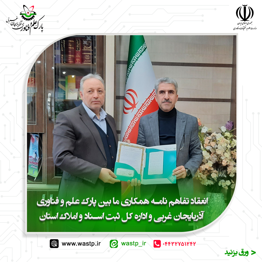 انعقاد تفاهم نامه همکاری مشترک ما بین پارک علم و فناوری آذربایجان غربی و اداره کل ثبت اسناد و املاک استان
