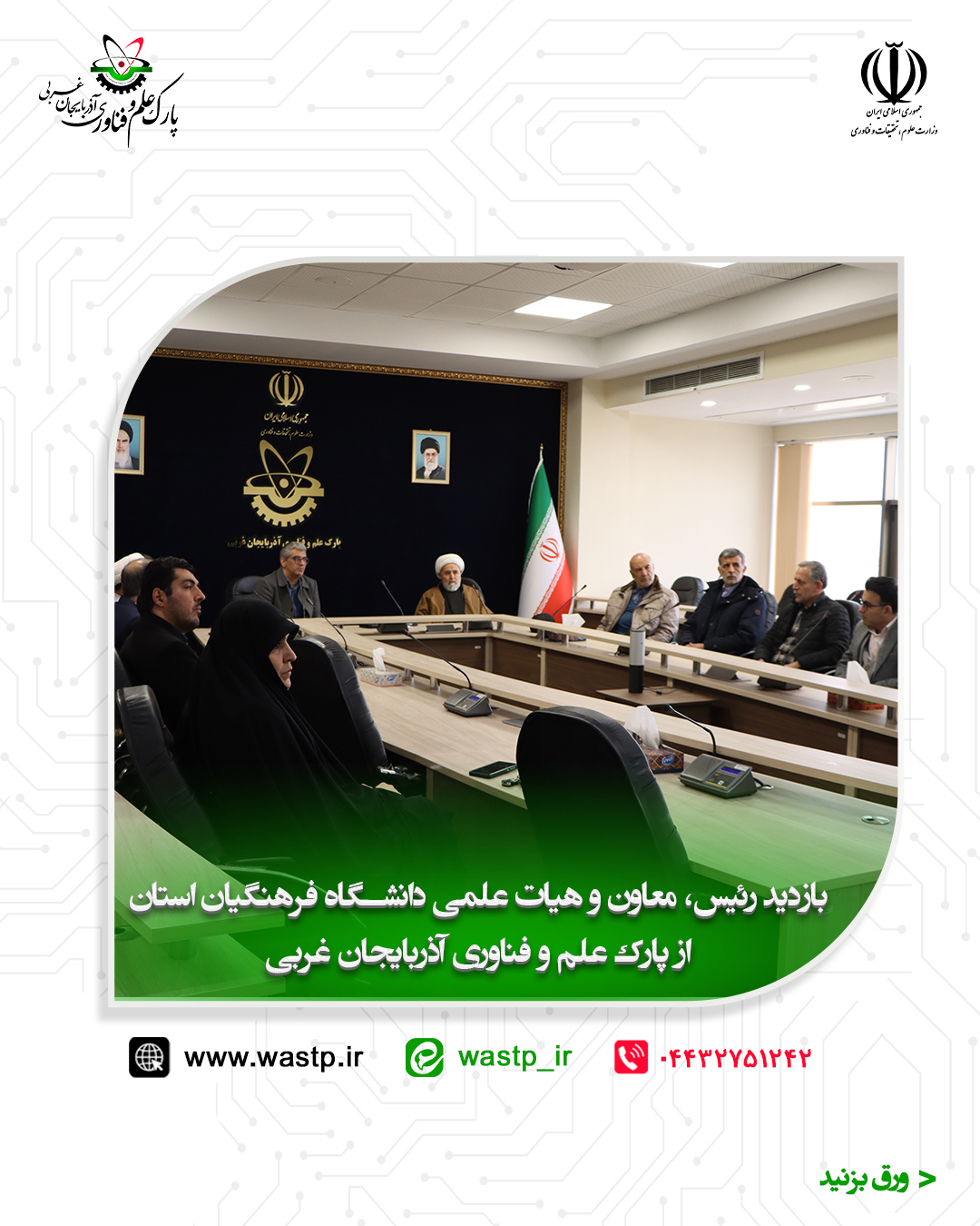 به منظور معرفی ظرفیت ها و پتانسیل های پارک علم و فناوری آذربایجان غربی به مسئولین دانشگاه فرهنگیان استان، بازدیدی از بخش های مختلف این سازمان و همچنین شرکت های دانش بنیان و فناور مستقر صورت گرفت.