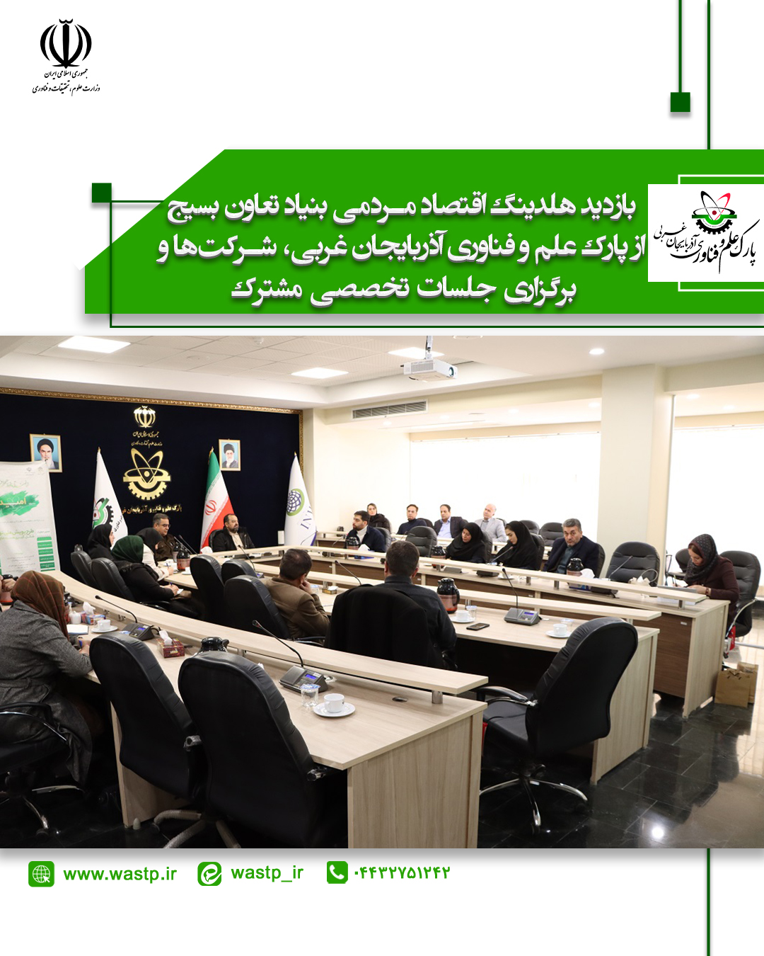به گزارش روابط عمومی پارک علم و فناوری آذربایجان غربی، در راستای تقویت تعاملات فناورانه و توسعه زنجیره ارزش تولید در استان، بازدید هلدینگ اقتصاد مردمی بنیاد تعاون بسیج از پارک علم و فناوری آذربایجان غربی، شرکتها و جلسات تخصصی مشترک با حضور مدیران پارک، نمایندگان هلدینگ و فعالان بخش خصوصی انجام شد.