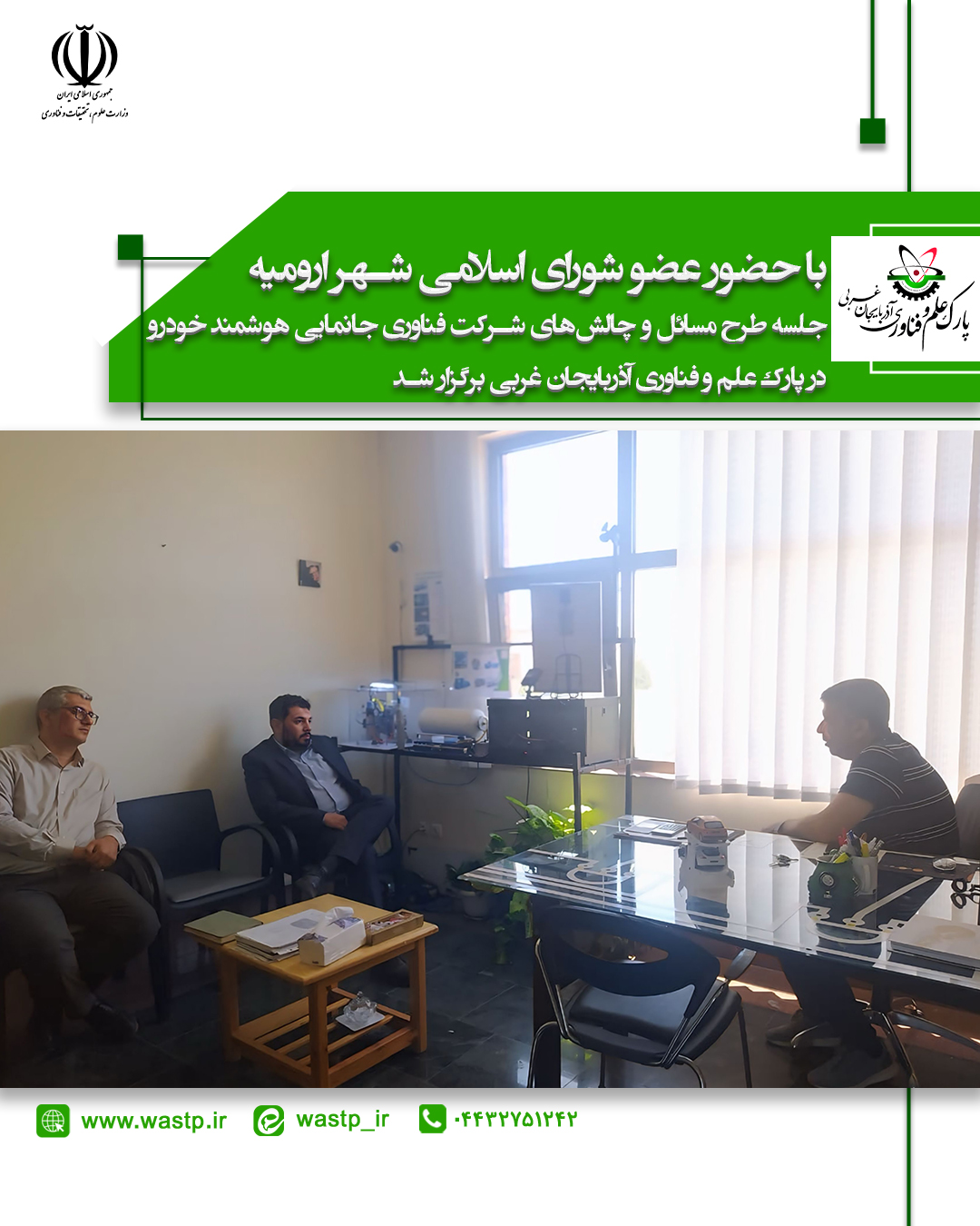 با حضور عضو شورای اسلامی شهر ارومیه، جلسه طرح مسائل و چالشهای شرکت فناوری جانمایی هوشمند خودرو در پارک علم و فناوری آذربایجان غربی برگزار شد