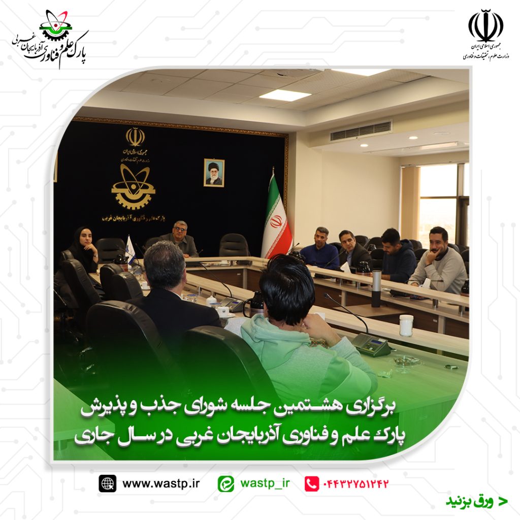 به گزارش روابط عمومی پارک علم و فناوری آذربایجان غربی، هشتمین جلسه شورای جذب و پذیرش پارک علم و فناوری، با ۶دستور جلسه در تاریخ ۱۱دی ماه با حضور اکثریت اعضای کمیته برگزار شد.