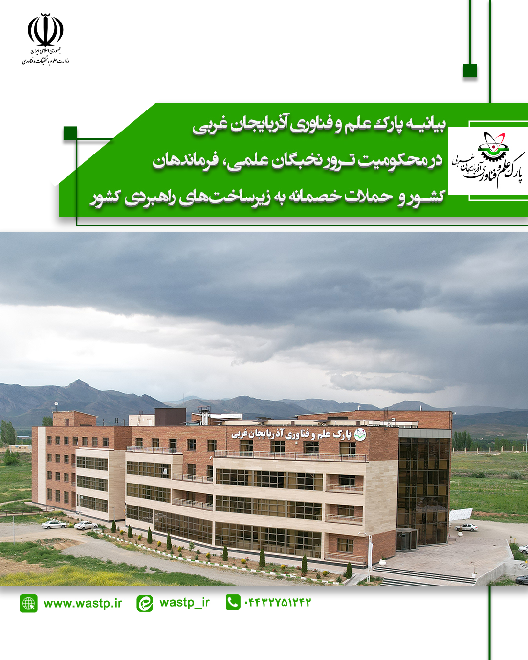 پارک علم و فناوری آذربایجان غربی، در کنار سایر مراکز علمی و نوآوری کشور، مصمم است با تمام توان در مسیر توسعه پایدار، ارتقاء فناوریهای بومی و تحقق آرمانهای والای شهدای علم گام بردارد و اجازه ندهد این جنایات بیپاسخ بماند.