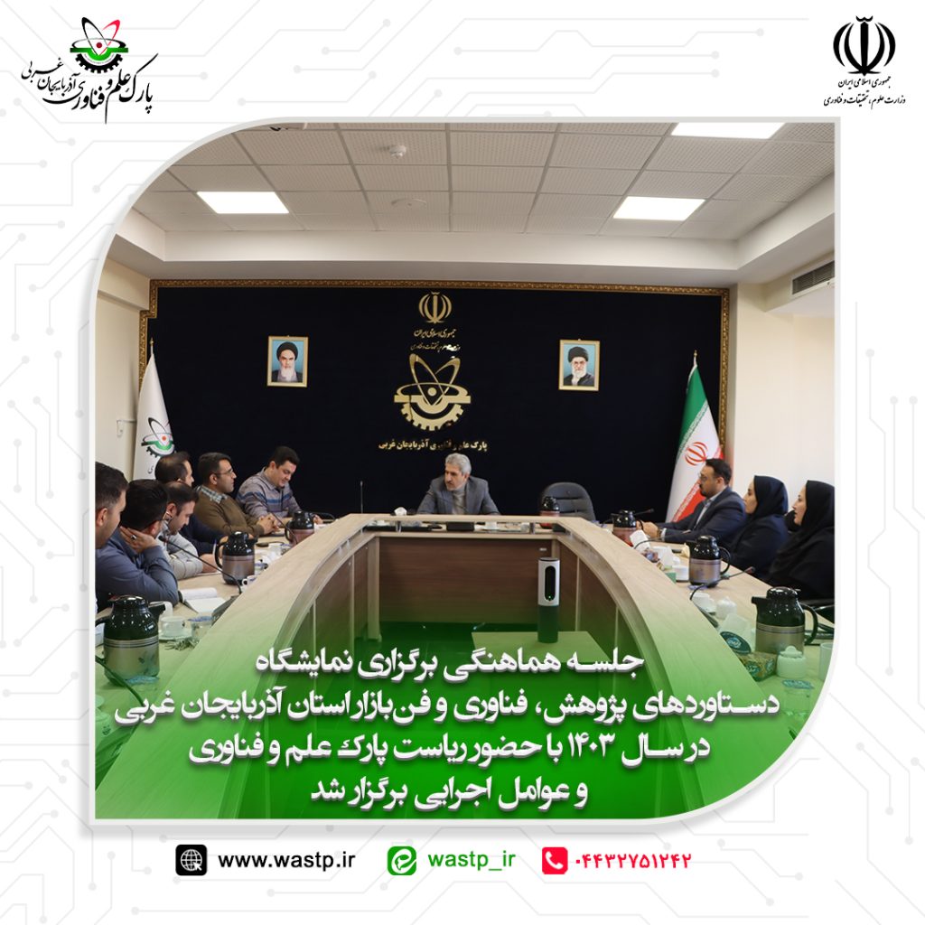 به گزارش روابط عمومی پارک علم و فناوری آذربایجان غربی، جلسات برنامهریزی تیم اجرایی نمایشگاه دستاوردهای پژوهش، فناوری و فنبازار استان آذربایجان غربی در سال ۱۴۰۳ با حضور مدیران بخش های مختلف پارک علم و فناوری و کارشناسان حوزه های مربوطه در محل اتاق جلسات پارک برگزار شد.