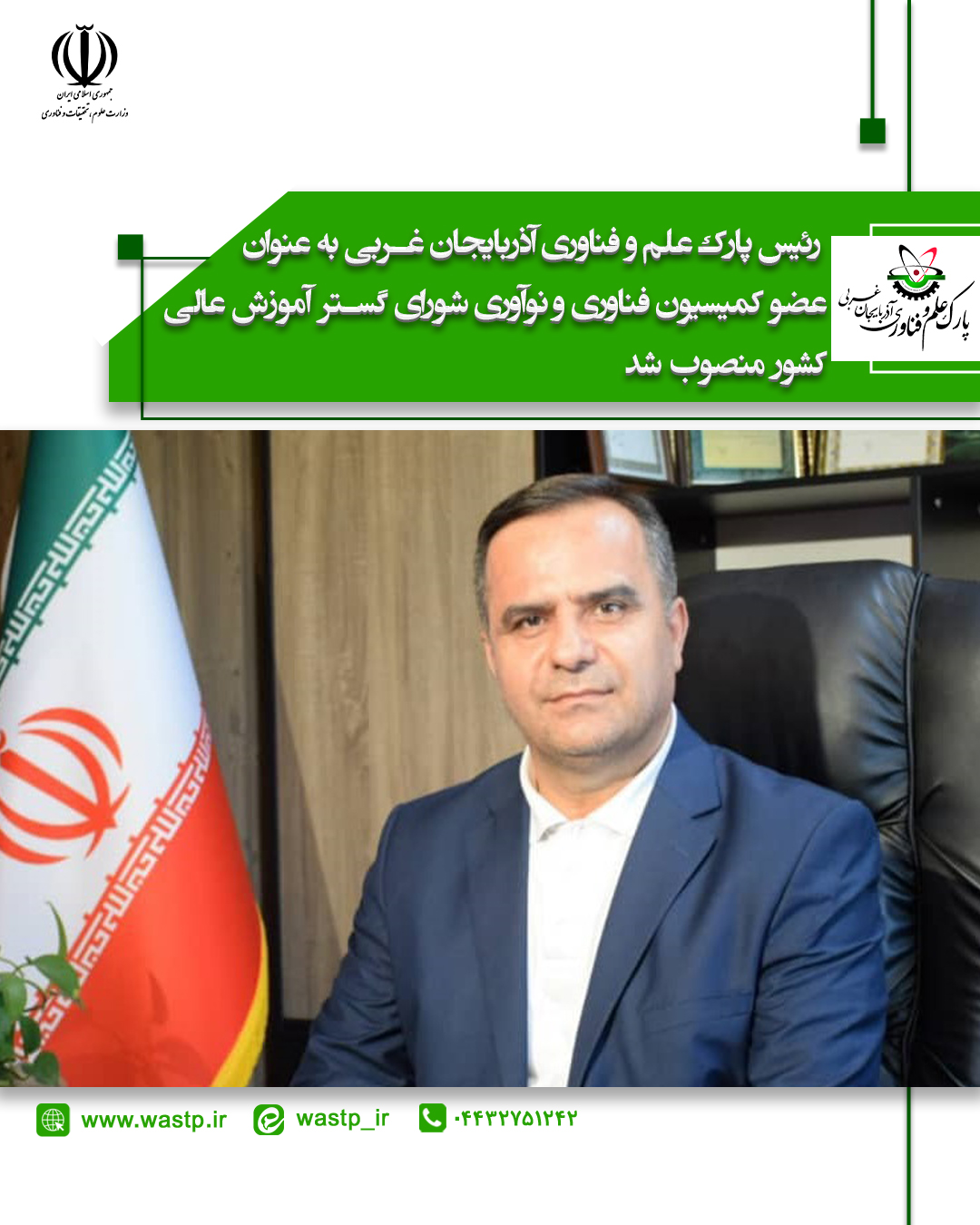رئیس پارک علم و فناوری آذربایجان غربی، به عنوان عضو کمیسیون فناوری و نوآوری شورای گسترش آموزش عالی کشور منصوب شد