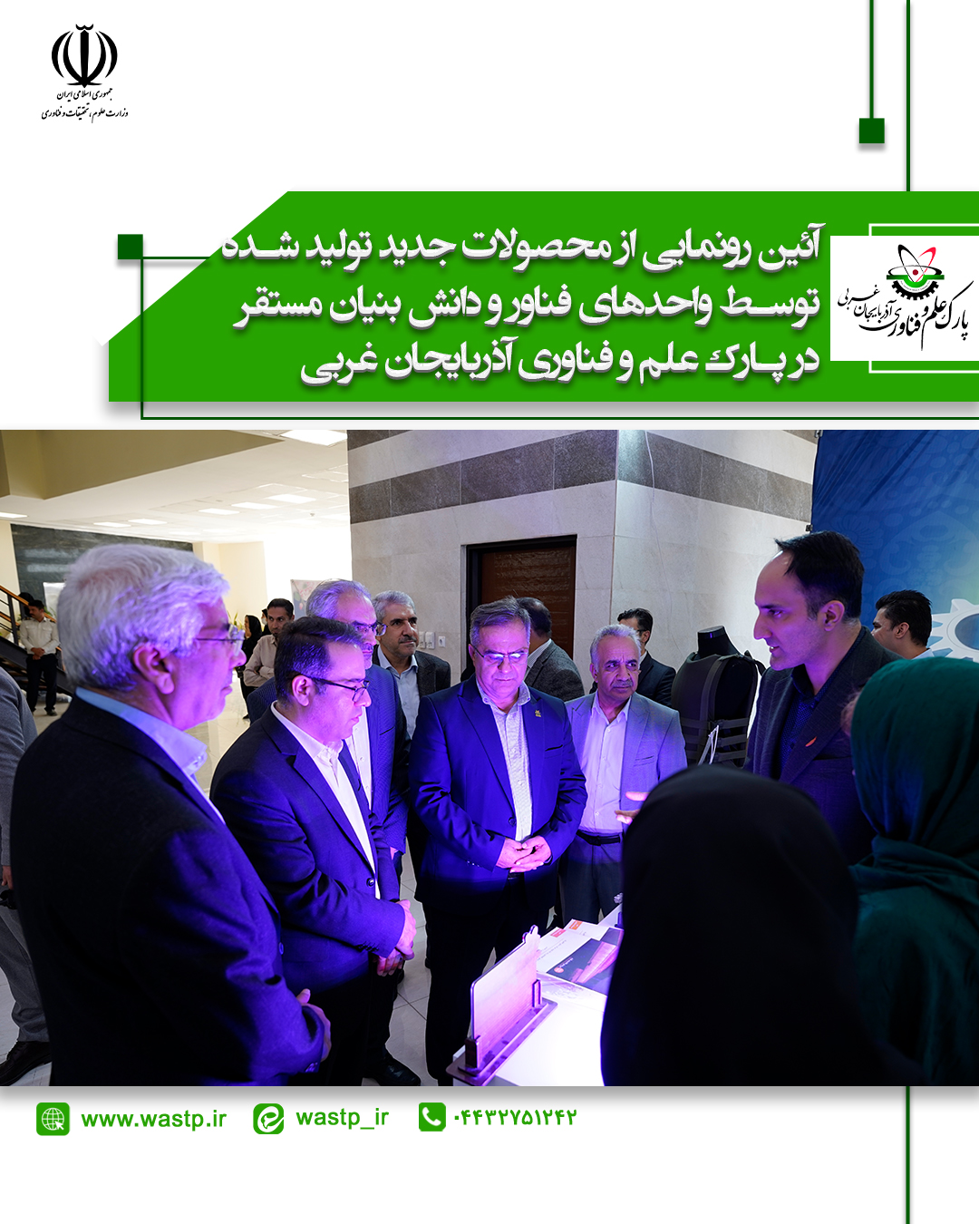 به گزارش روابط عمومی پارک علم و فناوری آذربابجان غربی، در این مراسم، محصولاتی همچون جلیقه هوشمند، سامانه مانیتورینگ هوشمند اتاق سرور، استابلایزر دیجیتال، نایلون تجزیهپذیر در آب، مگنتتراپی حیوانات، فیلتر غبار و اکونومایزر معرفی و عرضه شدند.