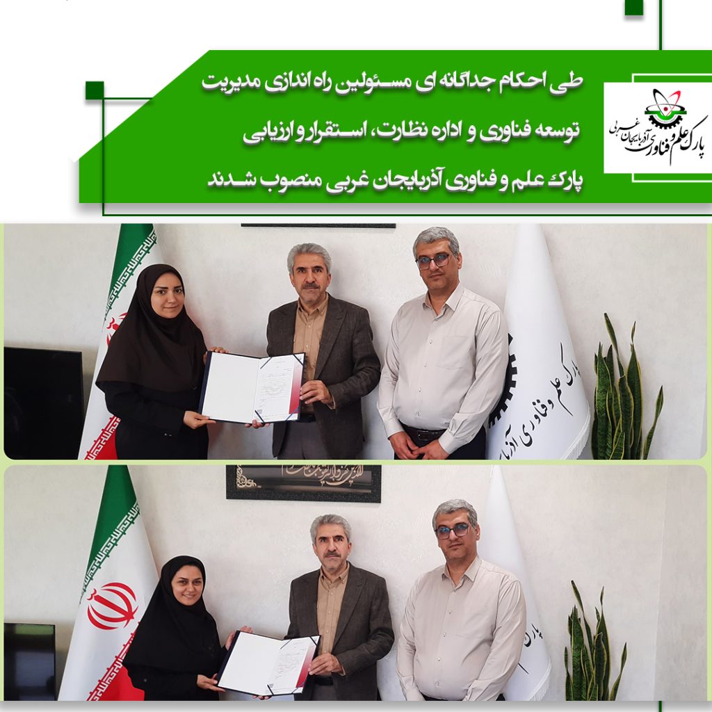 طی احکام جداگانه ای مسئولین راه اندازی مدیریت توسعه فناوری و اداره نظارت، استقرار و ارزیابی پارک علم و فناوری آذربایجان غربی منصوب شدند