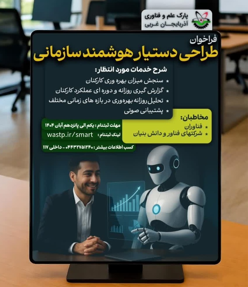 به گزارش روابط عمومی پارک علم و فناوری آذربایجان غربی، هدف از این فراخوان، طراحی و توسعهی یک دستیار هوشمند سازمانی با قابلیتهای زیر است: