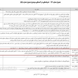 جدول شماره ۱۶ – تعرفه های درآمدهای موضوع جدول شماره (۵)