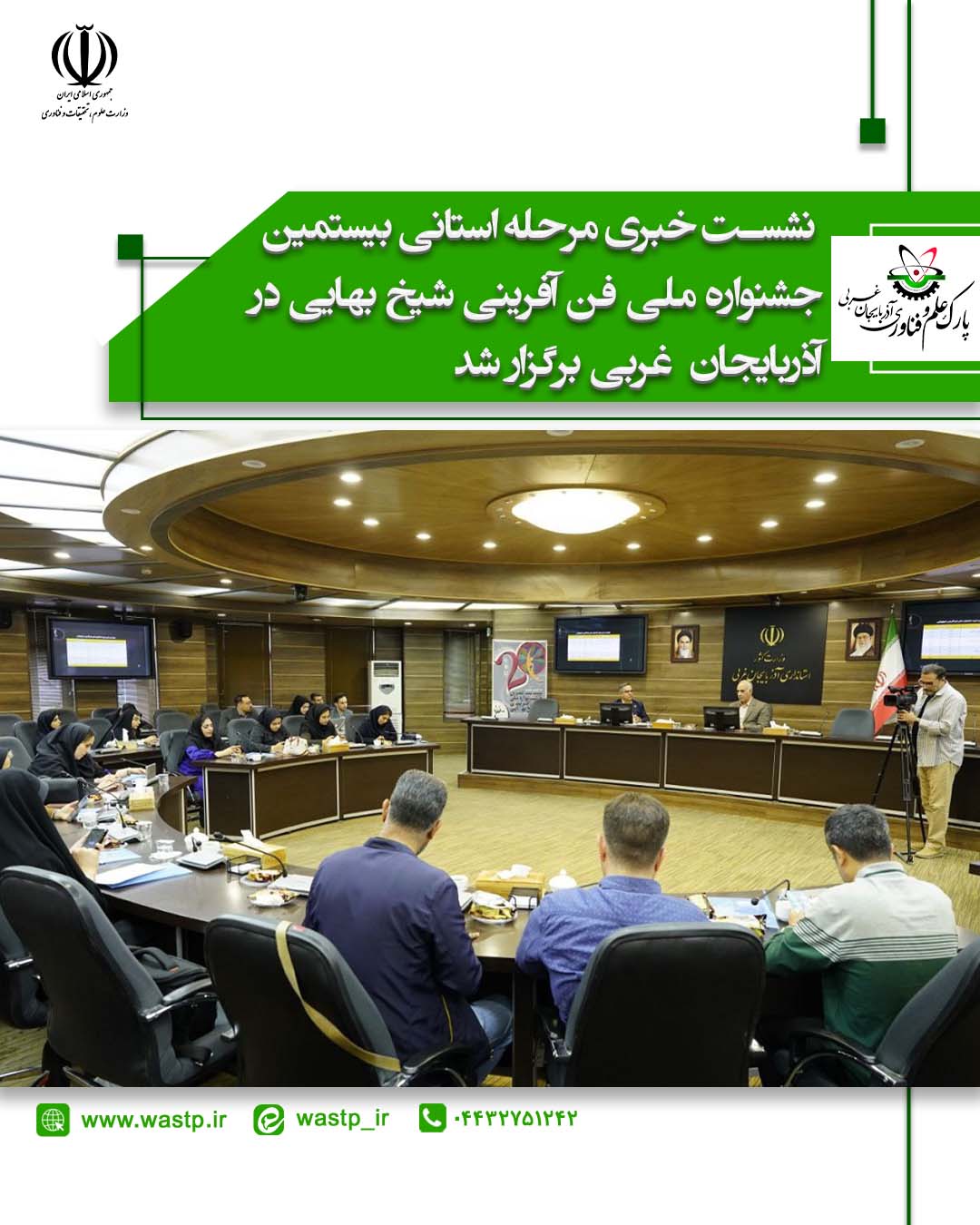 به گزارش روابط عمومی، دکتر حسن حیدری رئیس پارک علم و فناوری آذربایجان غربی در این نشست خبرداد: پارک علم و فناوری آذربایجان غربی به عنوان دبیرخانه استانی با همکاری شهرک علمی تحقیقاتی اصفهان، بیستمین جشنواره ملی فنآفرینی شیخ بهایی را در استان برگزار می کند.