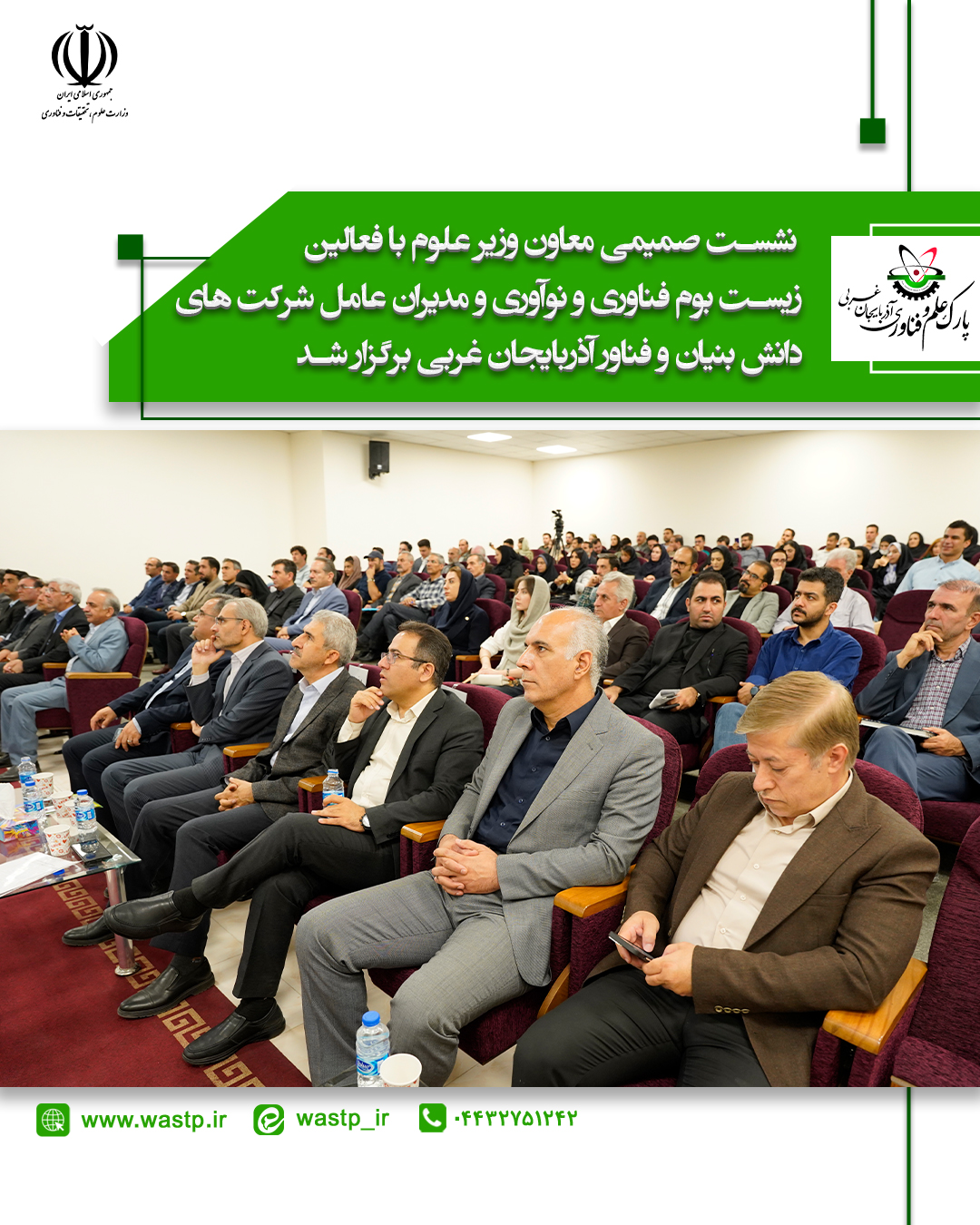 افزودنی است، انعقاد تفاهم نام همکاری با دانشگاه پیام نور استان، عقد قرارداد سرمایه گذاری بخش خصوصی بر روی یکی از شرکت های دانش بنیان و همچنین رونمایی از پوستر فراخوان واگذاری اراضی پارک علم و فناوری آذربایجان غربی از دیگر برنامه های این نشست بود.