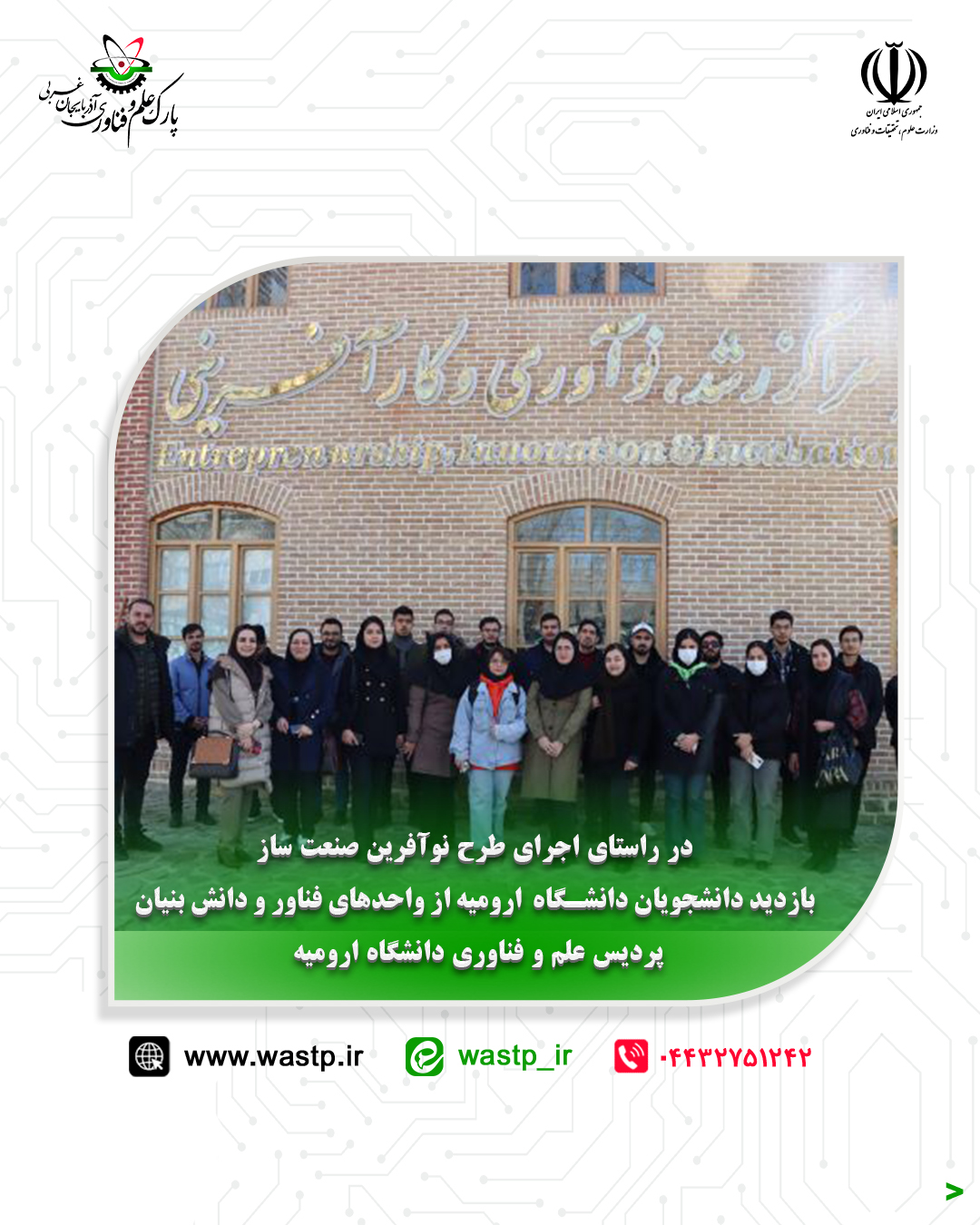 پارک علم و فناوری آذربایجان غربی در راستای اجرای طرح نوآفرین صنعت ساز، برگزار کرد: بازدید دانشجویان دانشگاه ارومیه از واحدهای فناور و دانش بنیان پردیس علم و فناوری دانشگاه