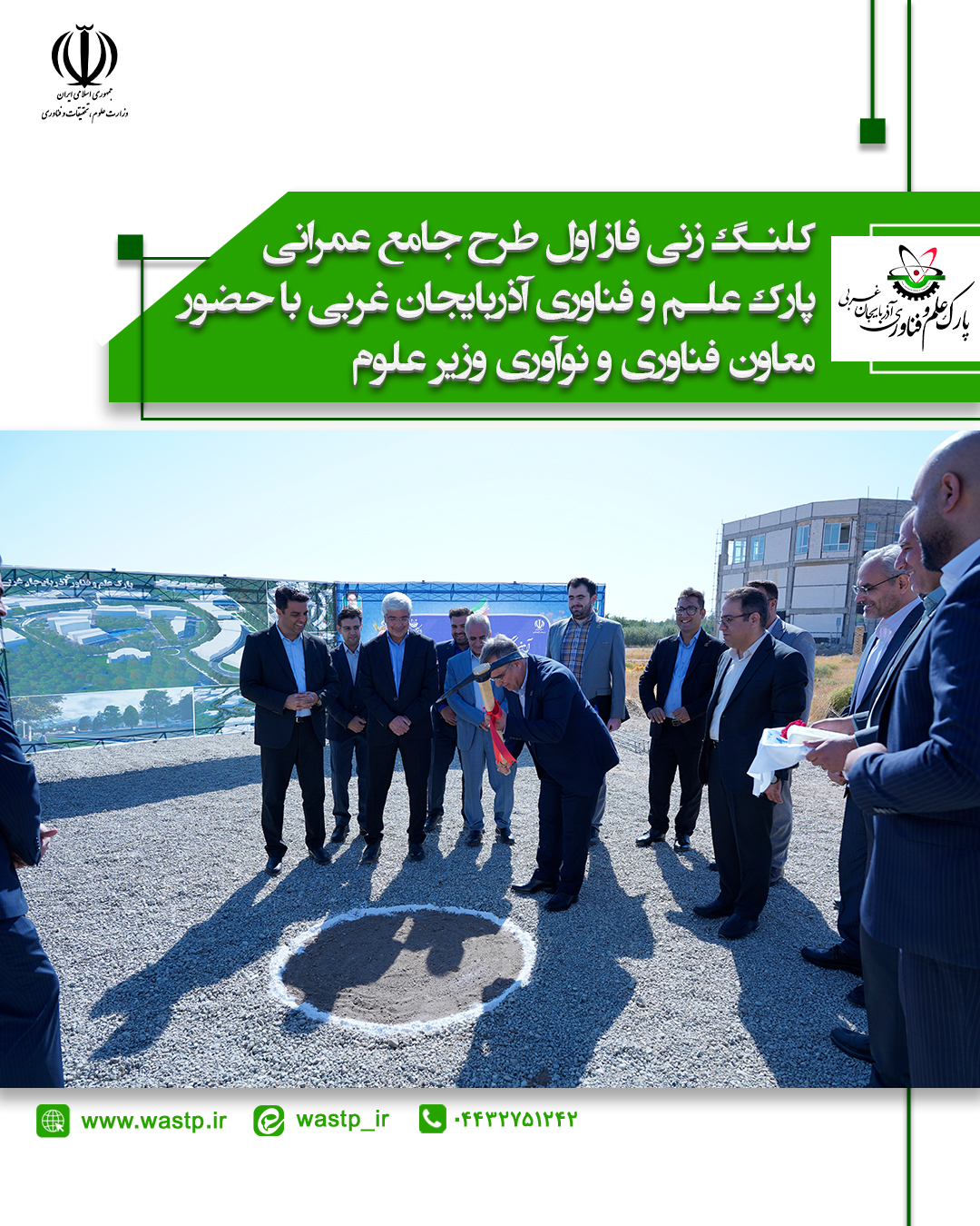 همچنین در ادامه برنامه، آیین کلنگزنی احداث ساختمان شرکت فناور “اروم نیرو توان” در محوطه پارک علم و فناوری آذربایجانغربی با حضور معاون وزیر انجام گرفت. این پروژه در راستای گسترش فعالیتهای فناورانه و پشتیبانی از شرکتهای فناور و دانش بنیان استان کلید خورد.