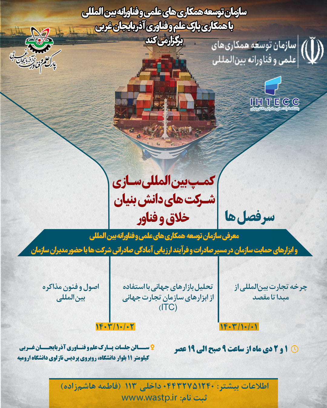 - اطلاعات بیشتر ۳۲۷۵۱۲۴۰-۰۴۴ داخلی ۱۱۳ سرکار خانم هاشم زاده