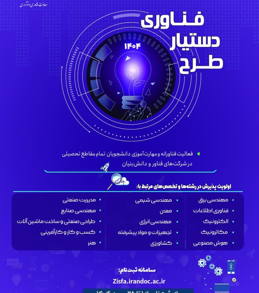 29 دی آخرین اخبار, اطلاعیه ها فراخوان مرحله چهارم طرح ملی «دستیار فناوری» منتشر شد ۲۹ دی ۱۴۰۴ ارسال شده توسط pejhman valizadeh ⭕️این فرصت طلایی را از دست ندهید. 🧠 هدف اصلی: هدایت دانشجویان به سمت کاربردیسازی دانش، ارتقای مهارتهای کسبوکار و توسعه فردی. ... ادامه مطالعه