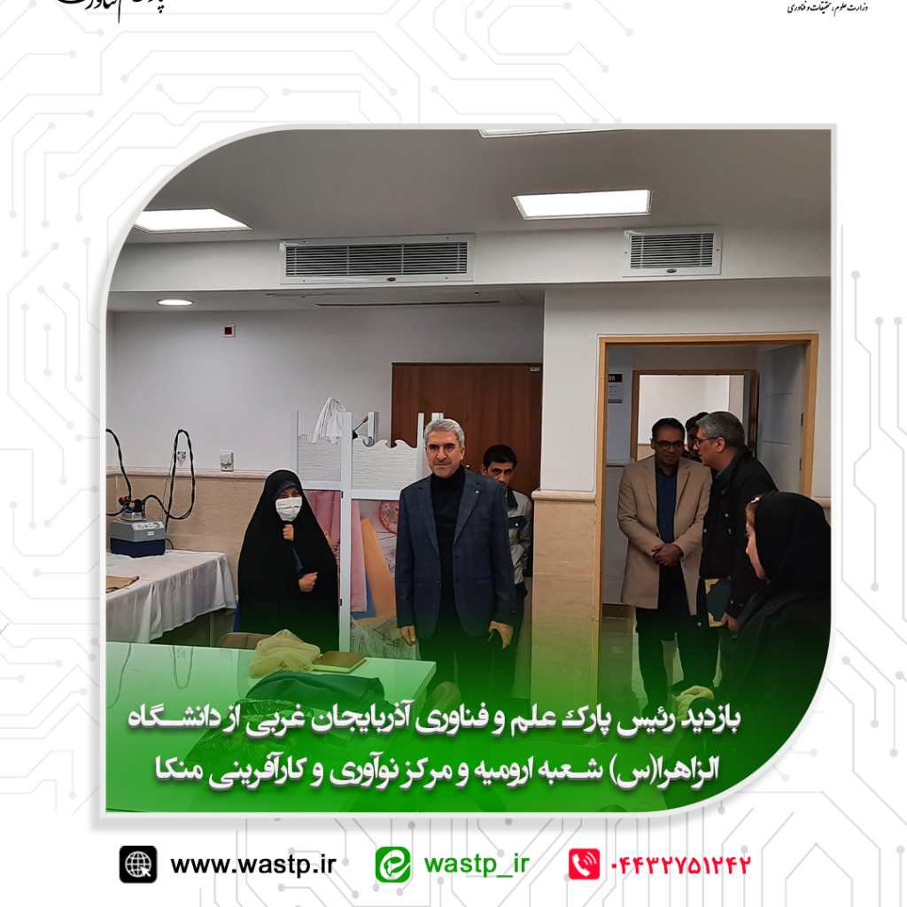 29 دی آخرین اخبار, گزارش تصویری بازدید رئیس پارک علم و فناوری آذربایجان غربی از دانشگاه الزاهرا شعبه ارومیه و مرکز نوآوری و کارآفرینی منکا ۲۹ دی ۱۴۰۳ ارسال شده توسط pejhman valizadeh دکتر جواد نوری نیا رئیس پارک علم و فناوری آذربایجان غربی در حاشیه امضای تفاهم نامه همکاری های مشترک با دانشگاه الزاهرا از زیرساخت های ا... ادامه مطالعه