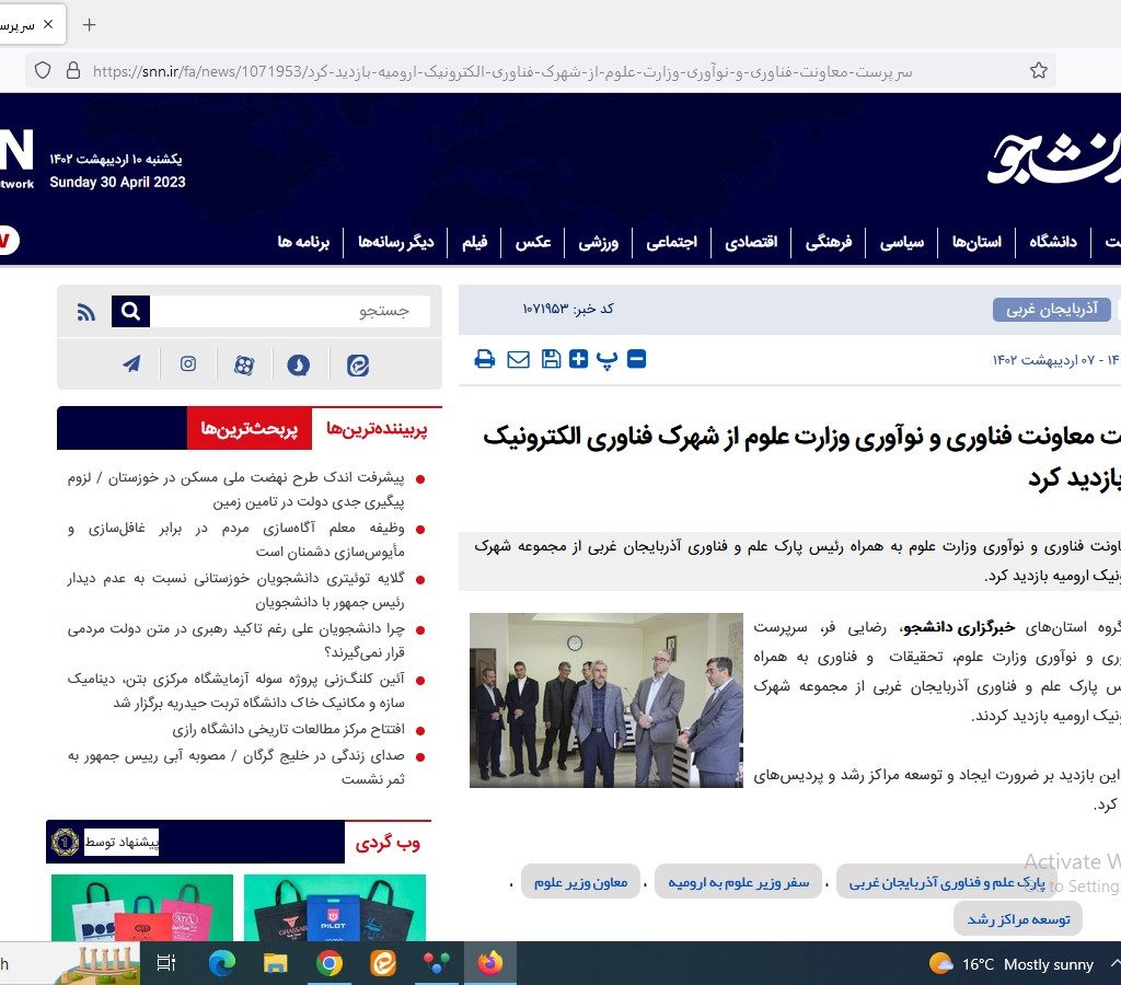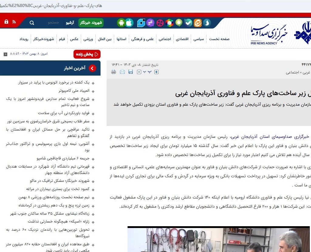 جشنواره فرهنگی و رسانه ای «پارک علم و فناوری در قاب رسانه» در آذربایجان غربی برگزار می شود