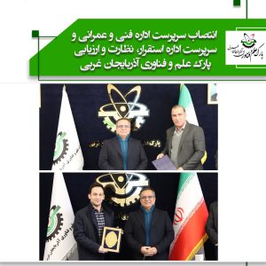 ۱۵ دی انتصاب سرپرست اداره فنی و عمرانی و سرپرست اداره استقرار، نظارت و ارزیابی پارک علم و فناوری آذربایجان غربی