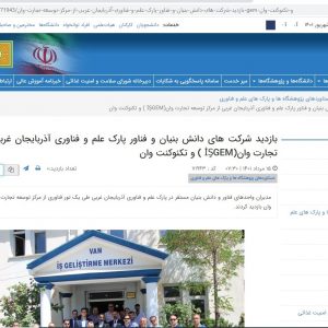 ۲۷ شهریور بازدید شرکت های دانش بنیان و فناور پارک علم و فناوری آذربایجان غربی از مرکز توسعه تجارت وان(İŞGEM ) و تکنوکنت وان